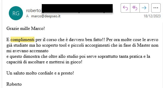Il corso viene aggiornato mensilmente con video nuovi, casi studio e approfondimenti fatti da altri colleghi SEO.